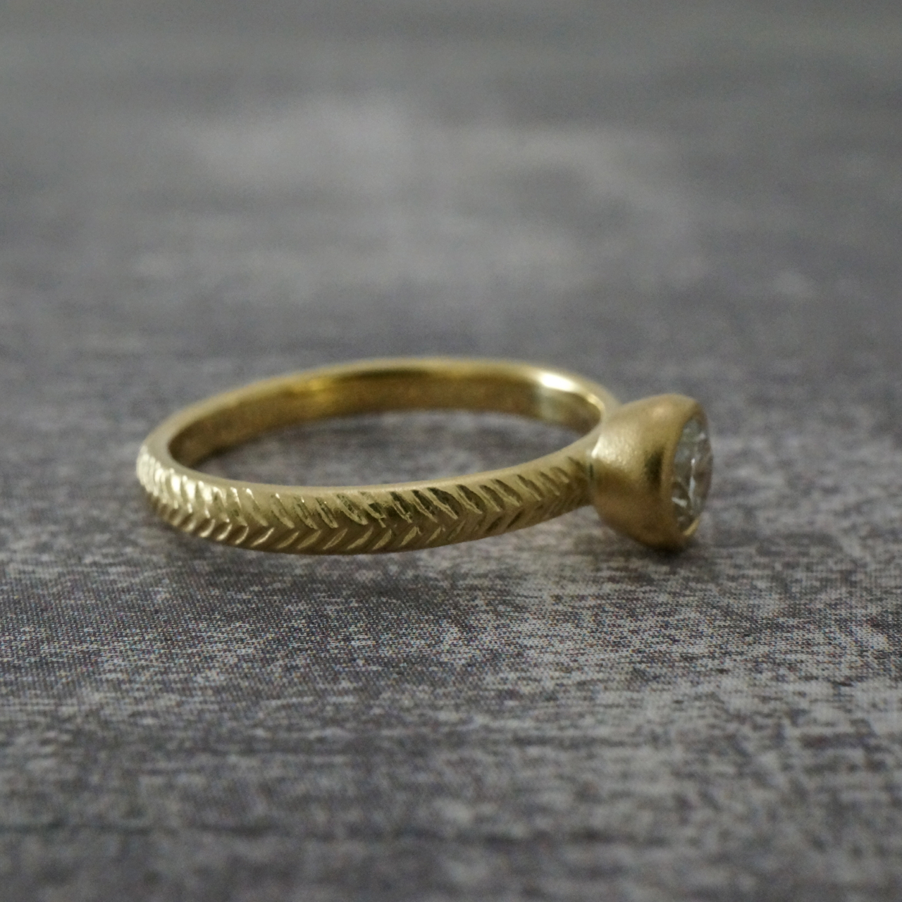 I'm in love with this recent feather diamond solitaire I created with a .40 carat diamond. I scaled the width of the band up to accommodate a larger stone. The result? It's just as delicately simple and stunning as the original. Congrats to this bride to be!